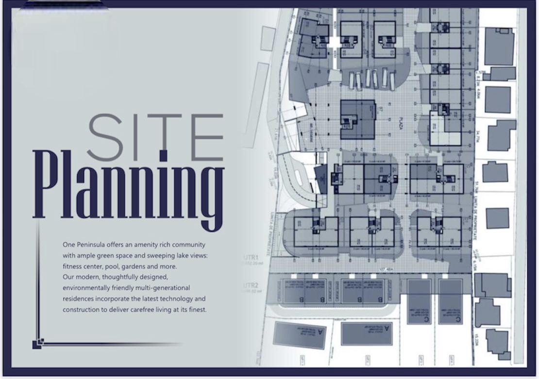 One Peninsula oferă o comunitate bogată în facilități, cu spațiu verde amplu și vederi uriașe la lac: centru de fitness, piscină, grădini și multe altele.