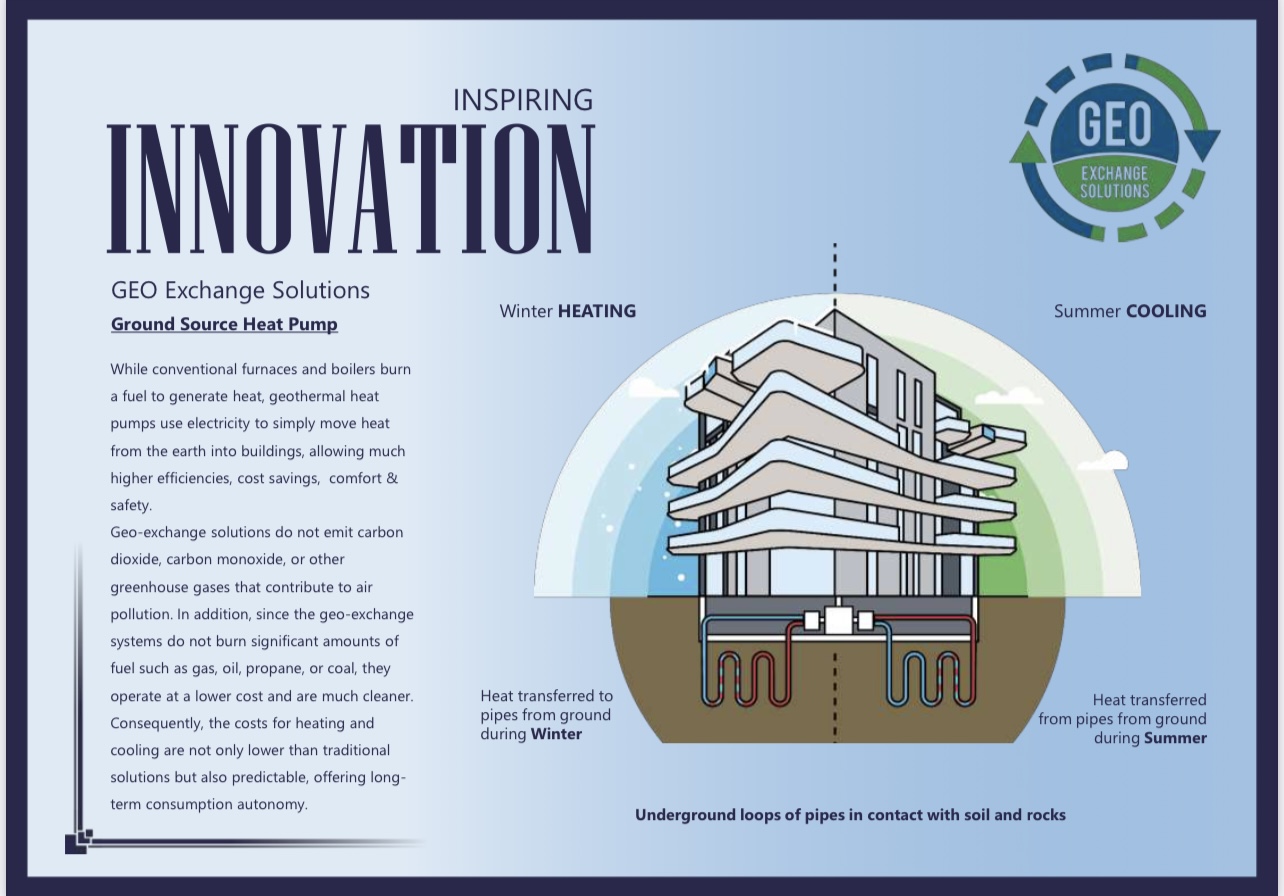 Soluțiile de schimb geografic nu emit dioxid de carbon, monoxid de carbon sau alte gaze cu efect de seră care contribuie la poluarea aerului. În plus, deoarece sistemele de geo-schimb nu ard cantități semnificative de combustibil, cum ar fi gazul, petrolul, propanul sau cărbunele, acestea funcționează la un cost mai mic și sunt mult mai curate. În consecință, costurile pentru încălzire și răcire nu sunt doar mai mici decât soluțiile tradiționale, ci și previzibile, oferind autonomie de consum pe termen lung.