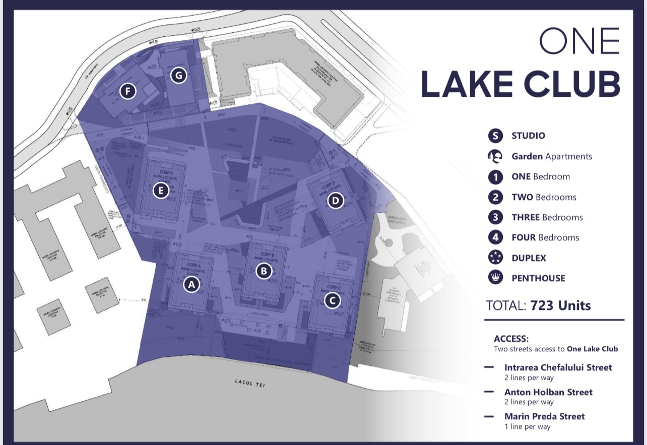 Localizat chiar pe malul Lacului Tei, One Lake Club se bucurà de o pozitie excelentà pe harta Capitalei, cu acces rapid la Bd.